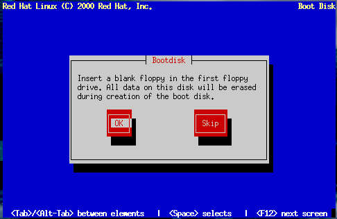 [Yes] を選択してから Space を押してブートディスクを作成します。次に、空のフォーマット済ディスケットを挿入するように指示されます。